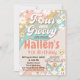 Four Ever Groovy Retro Boho Rainbow 4th Birthday Invitation