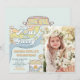 Four Ever Groovy Retro Rainbow 4th Birthday Photo Invitation