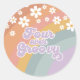 Four Ever Groovy Retro Rainbow Classic Round Sticker