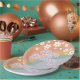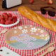Four Ever Groovy Retro Rainbow 4th birthday plates with daisies.
