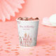 Complement your royal table setting with these exquisite paper cups, designed to bring a touch of magic to your little girl's 4th birthday celebration. Each cup features a beautifully detailed watercolor fairy tale castle and a whimsical unicorn, perfectly capturing the essence of a magical kingdom. The soft pastel pink tones and delicate accents align seamlessly with your princess theme, creating a cohesive and enchanting look for all your party beverages.