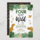Four ever Wild Dino Boy Gold Dinosaur Birthday Invitation