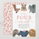Cute and fun girl's safari animals theme 2nd birthday party invitation featuring illustration of safari animals of giraffe, snow leopard, rhino, lion, elephant, and zebra with pink flowers, crowns, and party hats. The text says "XX is FOUR ever wild."