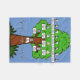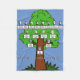 Four generations of your family tree are featured on this blanket. The names and the photos are set up as templates that should be changed to the names and photos of your own family members. The background features a green and brown tree drawing on a blue background.