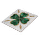 Four-leaf clover - Green and White Marble and Gold Tile