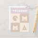 Four letter baby girl name congratulation card for a newborn baby and its parents in neutral pastel light pink lila beige colours. The 4 letters are customisable adjusting to the kids name. The letters are chosen in a cute font so that it looks childishly figurative.