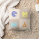 Four letter baby name pillow for a newborn baby girl and its parents in neutral pastel light pink beige colours. The 4 letters are customisable adjusting to the kids name. The letters are chosen in a cute font so that it looks childishly figurative.
