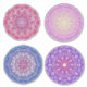 A kiss-cut sticker sheet featuring four vibrant mandalas offers a delightful array of colors and intricate designs. Each mandala is carefully crafted to showcase unique patterns and hues, making them perfect for decorating notebooks, laptops, or any surface that could use a touch of artistic flair. The kiss-cut technique ensures that the stickers are easy to peel off and apply, providing both convenience and aesthetic appeal.