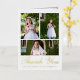 This elegant Catholic First Holy Communion thank you card features a three photo collage with real gold foil typography on the front, and a sweet thank you editable message inside with a simple gold colour cross, rustic watercolor greenery leaves, and one full photo. Only the front of this thank you card is real foil. This First Holy Eucharist thank you card is editable for a variety of Christian religious occasions, or to update to your own personal thank you message.
