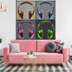 Four Pop Art Headphones, each pair of headphones is displayed within a square, each a different shade of grey. The headphones are in retro shades of orange, blue, pink and green with black shadows defining the shapes and contours of the headphones. The Four Pop Art Headphones design has a retro, old-school look and is ideal for those who love music, who prefer to listen to their music without interference from the outside world and DJ's who love spinning their vinyl. Visit the ElectricPopSpot shop and browse all our awesome music themed pop art designs! ElectricPopSpot - Transforming Pop Culture into Pop Art!