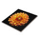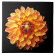 Garden themed ceramic tile featuring the fiery and dramatic Four Queens Dahlia flower on a black background.
