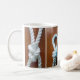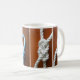 Four knots displayed on brown leather background and displayed as four panels that wrap around mug. Great gift for sailing enthusiasts, yacht or boat owners or anyone who loves a touch of the sea. The knots: sheet bend, poacher's knot, carrick bend, and bowline.