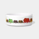 This is a heavy, durable bowl decorated with Tibbies of many colors, the perfect size for hungry/thirsty Tibs. The design is interesting and printing clear.
