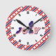 Fourth 4th of July blue, red typography wall clock design with Roman numbers and border with stars. A gift for the Independence Day.