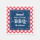 Casual summer BBQ / barbecue themed annual 4th of July napkins feature a navy blue frame, western and modern fonts, star accents, and a red and white gingham tablecloth plaid border design.