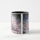 Enjoy your hot drinks in this patriotic mug displaying the original 13 star flag and Independence Hall on a background of fireworks.