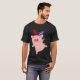 I give wanted to give this a 4 instead of a 5 because these Basic DARK T0shirts run unexpectedly SLIM or Narrow. Which is great if you do not have a potbelly, but I have a paunch. It isn't the shirt's fault that I've got a beer belly. The design and shirt itself is a quality cotton shirt. The color is more of a deep purple, but still a very pretty color. The Basic DARK T-shirts run a bit SLIMMER than the Basic Ts. The neck is a fraction narrower (or seems to be narrower) also. I'm a paunchy middle-aged woman and my neck is 12 inches (31cm) thick and the neckline fell about the same as in the photo of the man, and I had the desire to tug it a bit. So if you're a thick necked man or like loose shirts, be aware these are slimmer shirts. Once I get rid of my lockdown paunch it'll look great. The shirt washed well in cold water with no apparent bleeding. We don't have a dryer, so it hung dry. Did not shrink. Love the colors and the design. The design looks smaller on my shirt than it does on the model on-line. But still, it looks good on the shirt. The printing looks as it does on the model, just the size seems fractionally smaller. Washed garment in cold water, hung dry and design appeared unaffected.