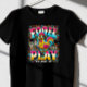 Here’s another funny and whimsical April Fools’ Day t-shirt design featuring a cartoon-style rubber chicken with a surprised expression, bold, playful typography reading "Fowl Play," and colourful confetti. 🐔😂✨