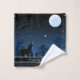 Fox And Full Moon At Midnight. Cute fox is enjoying the moonlight and sparkly stars and looks like also missing someone special. Silhouette design created for anyone who loves animals, foxes, night scenery and the moon. Can be a lovely gift. Customise the words easily if you like and if you do not want the full set then select a single towel from the drop menu. Matching items available in collection.