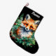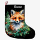 A little red fox peers out from holly branches accented with bright, red berries in this charming watercolor on a Christmas Stocking. Perfect for anyone who loves foxes, nature, and wildlife.