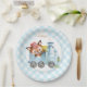 Fox and Train Gingham Blue Baby Shower Paper Plate