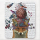 Fox Birdkeeper with Artichoke by Fab Funky. Fox posing with birds and an artichoke atop its head. Has a book page for a background. | 192164D