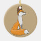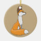 This gorgeous cartoon fox is sitting patiently on this Christmas ornament waiting for the festivities to begin! The bushy tail is curled around her body and her eyes are focused on spending the holiday season with you!