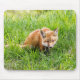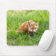 This adorable red fox cub (kit) sits in tall grass outside its den.