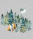 Enjoy this fun watercolor design featuring this family of foxes in an evergreen forest with a magical snowfall under a full moon. Let it snow!