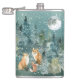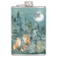 Fox Family Forest Full Moon Snowfall Hip Flask