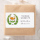 Book sticker in white with a cute little fox wearing a flower on its head, surrounded by a floral laurel wreath. Add your child's initial inside the wreath, and their name in a lovely script.
