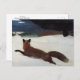 A fine art postcard with the painting, The Fox Hunt (1893), by the American artist Winslow Homer (1836-1910) from the Realism movement. A red fox running through the snow in winter.