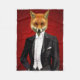 Fox In Evening Suit, Portrait by Fab Funky. Features a well-dress fox against a plush red background. | 190731D