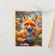 A pretty little fox is looking at you. He's sitting between flowers playing with butterflies.