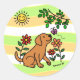 Fox Red Labrador and Green Classic Round Sticker for Labrador Fans! Colourful and cute Fox Red Labrador Retriever cartoon design with flowers. Adorable Fox Red Labrador puppy sitting in the garden with flowers and green plants. Whimsy and funny Labrador Retriever Dog Cartoon created by Naomi Ochiai from Japan.