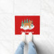 Fox Red Labrador Christmas Evergreen Trees Christmas Doormat for dog lovers who love Labradors. Beautiful Fox Red Labrador Silhouette design with Santa Hat. Snow and evergreen trees. Created by Naomi Ochiai.