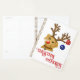 Cute Fox Red Labrador Retriever is dressed up in her holiday Rudolph red nose, reindeer antlers and sleigh bell collar, complete with hanging Peace and Joy decorations. Customise this design with your preferred holiday greeting. Black and Yellow Labrador Retreiver and Border Collie designs are also available.