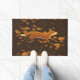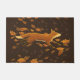 A beautiful fox runs through a golden litter of falling autumn leaves. By Paxdomino