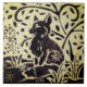 Fox Snow Grey Green Stoneware Winter Woodland Art Tile