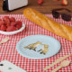 A watercolor painting of two red fox kits in the spring adorns these paper plates!