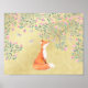 Cute watercolor fox and butterflies illustration with beautiful pink flowers leaves and branches pattern on a faux gold foil background. PLEASE NOTE: These are flat printed graphics - not real gold foil.
