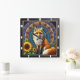Fox with Mandala and Sunflower Vibrant Colours Square Wall Clock