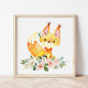 Fox, Woodland Animals, Boho, Pink Flowers Poster