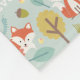 A fleece blanket featuring a pattern with illustrations of foxes, trees, leaves, and acorns. Background is light blue. Personalise the name.