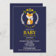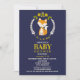 A baby shower invitation featuring an illustration of a fox inside a wreath decorated with flowers, leaves, and an acorn. Personalise the text.
