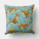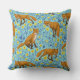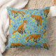 Foxes and buttercups on pool blue cushion