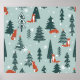 christmas, illustration, animal, fox, holiday, decor, xmas, forest, cartoon, white, poster, happy, green, blue, orange, celebration, snowflakes, drawing, ornament, comic