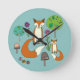 Foxes in the forest round clock