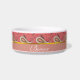 This is a heavy, durable bowl decorated with Tibbies of many colors, the perfect size for hungry/thirsty Tibs. The design is interesting and printing clear.