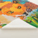The fabric is really soft, and thick, I’m sitting here with it wrapped around me and it’s so warm! It’s really smooth and sleek on the printed side and fluffy on the back. I love it! Such good quality, so vibrant and clear, not blurry at all! See the photos I’ve attached, there’s no filters or anything on them!